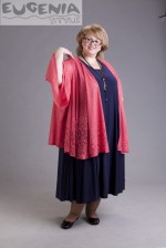 Закругленная линия низа. Широкие длинные рукава. Передние полочки украшает рисунок. Длина ниже бедра и широкий размах позволяет рекомендовать ее для любого типа фигуры.