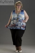 Не очень длинная летняя майка, несколько расклешена к низу. Красивая расцветка, очень гармонично будет смотреться с блузой из такой-же ткани.(смотрите в разделе Лето нашего каталога)