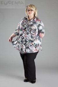 Стильная блуза из тонкого эластичного полотна. От планки заложены горизонтальные сборочки, что позволяет выигрышно подчеркнуть грудь. Линия низа оформлена уголком. Расцветка с акцентом на строгий стальной цвет, что позволяет сочетать ее практически с любым “низом”.Мягкая и приятная к телу.
