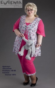 Домашняя пижама. Расклешенная к низу рубашка подойдет дамам с широкими бедрами. Симметричная розовая вставка-уголок создает эффект два-в-одном.Основная ткань серого цвета с рисунком из сердечек и букетиков. Дополнительного очарования придают узенькие рюши и бантик.Штаны на резинке.