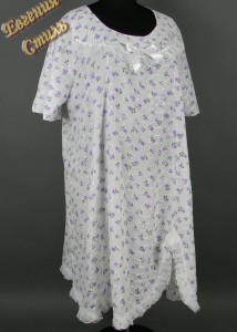 Состав: хлопок 100%. Нежная ночная сорочка, кокетка по линии груди украшена красивым кружевом и атласным бантиком. Низ так же отторочен кружевами. Небольшой закругленный вырез по шву. Короткий и широкий рукав.