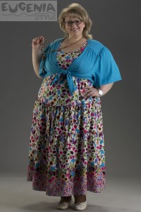 Болеро из тонкой эластичной ткани. Спинка на кокетке, от которой заложены мелкие складки. Полочки цельнокроеные, от плеча так же задрапированы складками. Рукава – широкие крылышки. Болеро идеально подойдет дамам с полными руками.