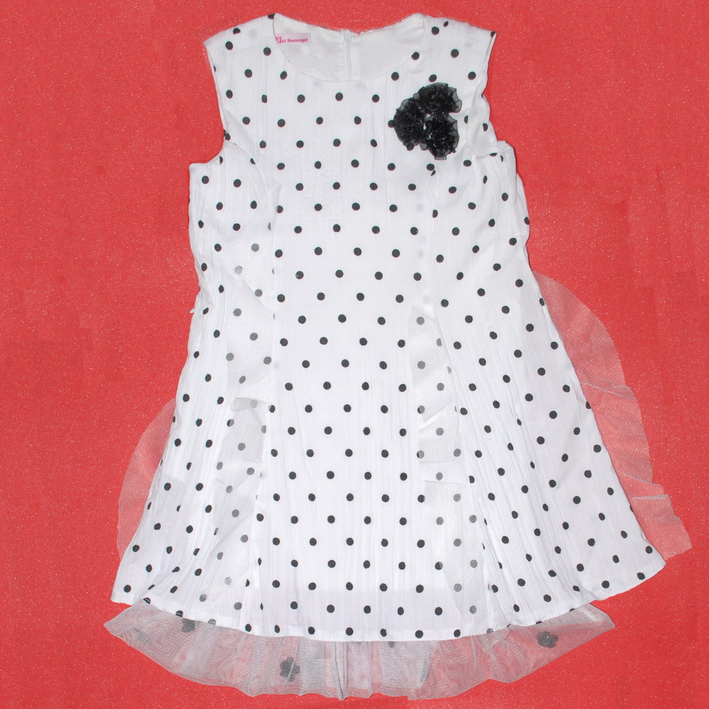 В меру нарядное платье в классический черный горох, с воланами. В нижней юбке притаились милые, но очень скромные цветочки, украшенные бисером. Все воланы начинаются на разной высоте, сзади – на уровне лопаток, как настоящие крылышки. Платье в горошек: купить в интернет - магазине просто. Если сомневаетесь в размерах, посмотрите нашу таблицу размеров. Или закажите 2 смежных размера