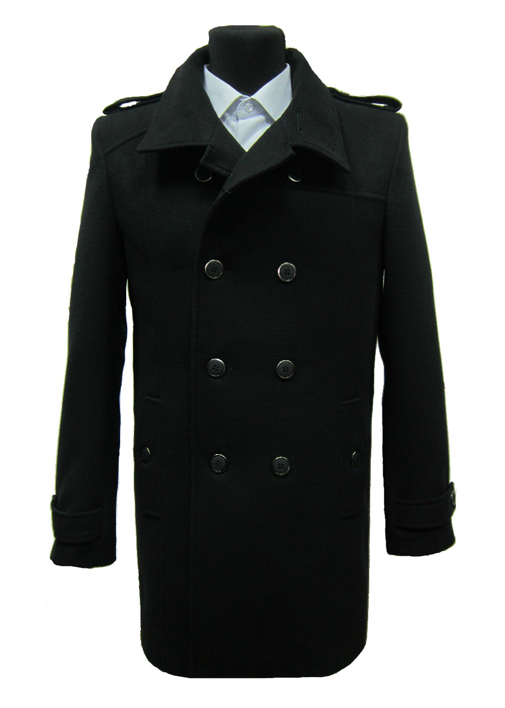 Двубортное молодежное пальто с воротником, который можно поднять и застегнуть на пуговицы. Длина по спинке рост 176 - 83см, рост 182 - 85см.