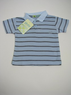 Замечательная футболка-поло станет ярким акцентом в летнем образе вашего ребенка . Модель с отложным воротником и короткими рукавами. Спереди – небольшая застежка на пуговицы. Изделие декорировано рисунком в полоску.