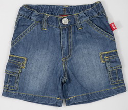 Красивые джинсовые шорты с застежкой на молнию и на пуговицу. Декорированы по бокам двумя накладными карманами с клапанами, двумя втачными карманами и эффектом потертости. Удобные шлевки на поясе и резиночки внутри на поясе для регулировки объема по талии.