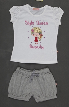 Симпатичный летний комплект для девочки: футболочка с красивым принтом и короткие шортики.