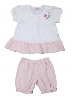 Великолепный комплект, состоящий из туники и коротких шортиков. Футболка с округлым вырезом горловины и короткими рукавами. Изделие украшено милым рисунком. Отличный вариант на каждый день.