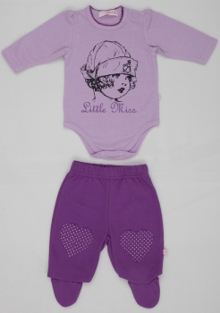 Очаровательный комплект для юных модниц : боди с длинным рукавом с оригинальной аппликацией, кнопочки на плече сделают переодевание Вашего малыша максимально комфортным штанишки на мягкой резинке и пришитыми наколенниками позволят малышу с легкостью познавать мир.