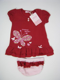 Яркое, кокетливое платьице для маленькой принцессы! Имеет короткие рукавчики и округлый вырез горловины. Платье декорировано милыми оборочками и стильным принтом в виде бабочки. Изделие имеет замечательные и комфортные трусики в комплекте.