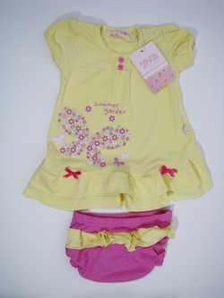 Яркое, кокетливое платьице для маленькой принцессы! Имеет короткие рукавчики и округлый вырез горловины. Платье декорировано милыми оборочками и стильным принтом в виде бабочки. Изделие имеет замечательные и комфортные трусики в комплекте.