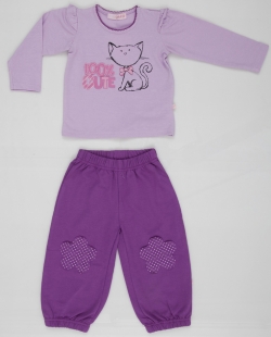 Очаровательный комплект для юных модниц : кофточка с длинным рукавом с оригинальной аппликацией, кнопочки на плече сделают переодевание Вашего малыша максимально комфортным штанишки на мягкой резинке и пришитыми наколенниками позволят малышу с легкостью познавать мир