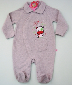 Комбинезон с длинным рукавом с ножками, застегивается спереди и между ножками на кнопочки по всей длине штанины, что делает переодевание очень удобным.