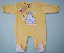 Комбинезон из мягкого велюра с длинным рукавом с ножками, застегивается на плече и между ножками на кнопочки по всей длине штанины, что делает переодевание очень удобным