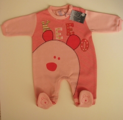 Комбинезон футер с динным рукавом с ножками, застегивается на плече и между ножками на кнопочки по всей длине штанины, что делает переодевание очень удобным