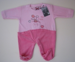 Комбинезон из мягкого велюра с длинным рукавом с ножками, застегивается на плече и между ножками на кнопочки по всей длине штанины, что делает переодевание очень удобным