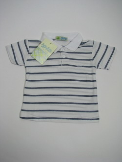 Замечательная футболка-поло станет ярким акцентом в летнем образе вашего ребенка . Модель с отложным воротником и короткими рукавами. Спереди – небольшая застежка на пуговицы. Изделие декорировано рисунком в полоску.