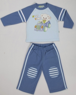 Очаровательный комплект для юных модников : кофточка с длинным рукавом с оригинальной аппликацией, кнопочки на плече сделают переодевание Вашего малыша максимально комфортным штанишки на мягкой резинке и пришитыми наколенниками позволят малышу с легкостью познавать мир