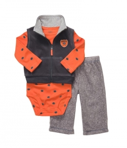Уютный и симпатичный набор состоящий из хлопкового боди с длинным рукавом, жилета на молнии и брючек на резиночке из микрофлиса.