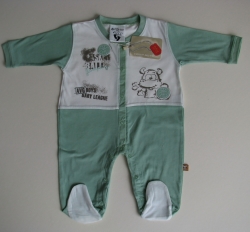 Комбинезон хлопковый с длинным рукавом с ножками, застегивается спереди по всей длине и между ножками на кнопочки по всей длине штанины, что делает переодевание очень удобным