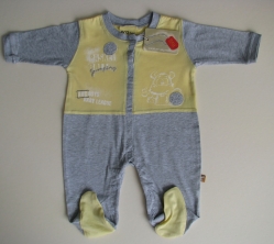 Комбинезон хлопковый с длинным рукавом с ножками, застегивается спереди по всей длинне и между ножками на кнопочки по всей длинне штанины, что делает переодевание очень удобным