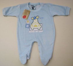 Комбинезон из мягкого велюра с длинным рукавом с ножками, застегивается на плече и между ножками на кнопочки по всей длине штанины, что делает переодевание очень удобным